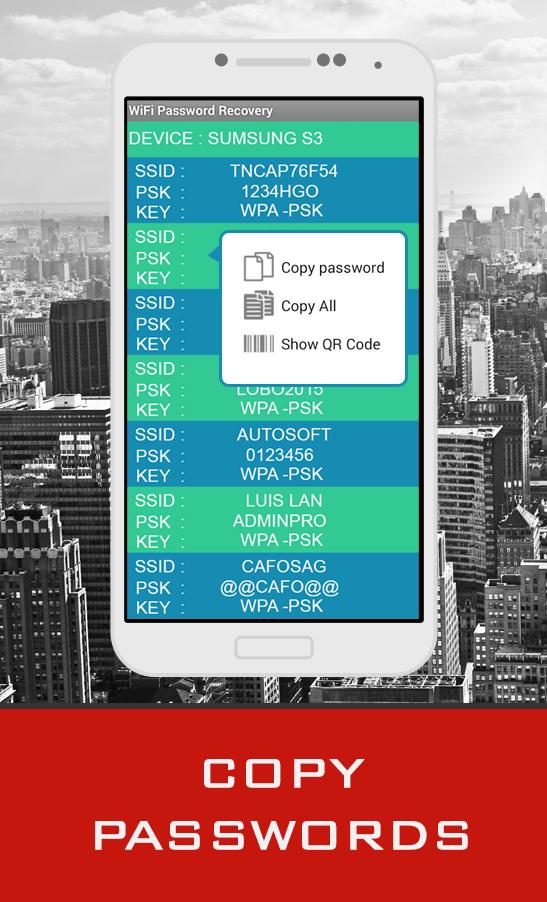 WiFi Password Recover (ROOT) récupérer votre mot de passe par défaut Wi-Fi. Si vous avez oublié la clé de votre réseau Wi-Fi à domicile, ou celui que vous avez configuré pour vos parents il y a quelques mois? La récupération de mot de passe du routeur WiFi est une application hors ligne qui vous aide à découvrir les mots de passe oubliés de vos points chauds WiFi.